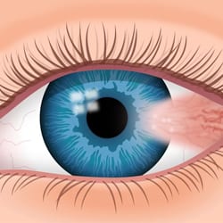 A pterygium is an elevated, wedged-shaped bump on the eyeball that starts on the white of the eye (sclera) and can invade the cornea. Because on being in the sunlight for long hours without proper UV protection increases your risk of developing pterygium, this disorder is commonly known as “surfer’s eye.” However, you don’t have to be a surfer or ever see the ocean to get it. Although pterygia are benign (non-cancerous) growths, they can permanently disfigure the eye and can cause discomfort and blurry vision.